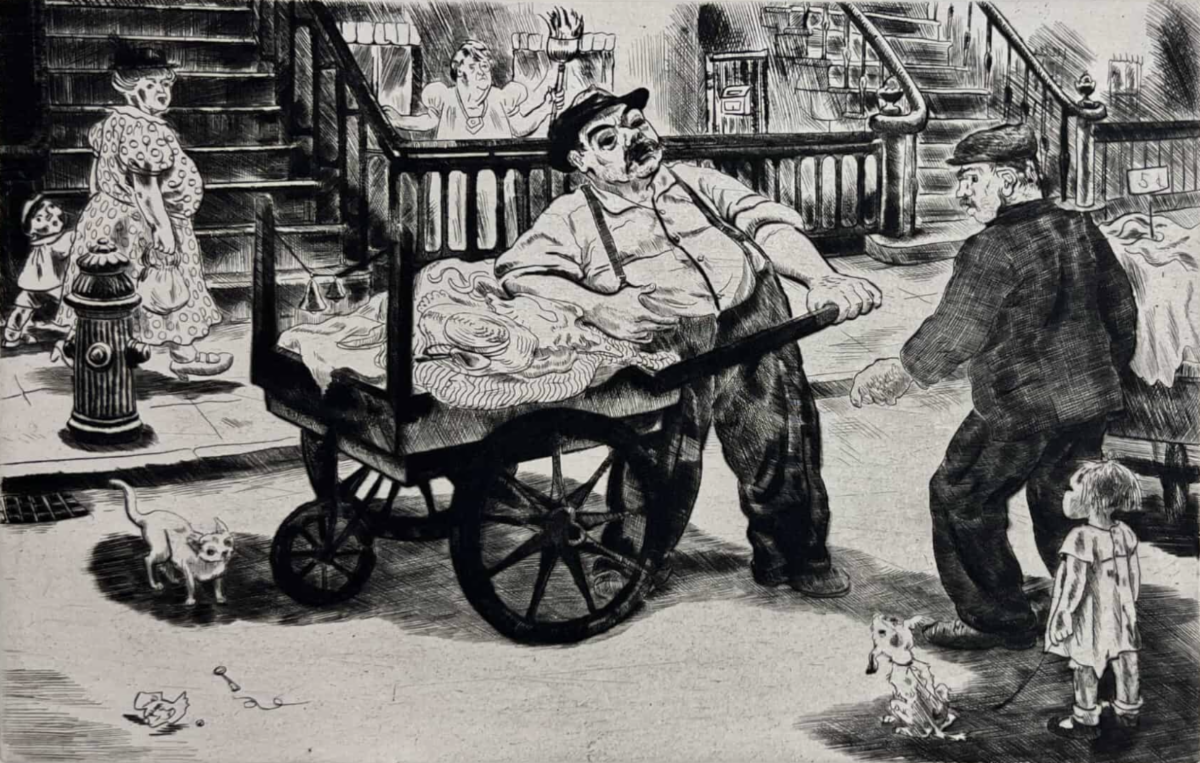 Peggy Bacon, The Rival Ragman, 1936, Etching, 6 x 9 inches, $700 | Federico Castellon, The Groom, 1947, Lithograph, 10 x 12.75 inches, $600 | |