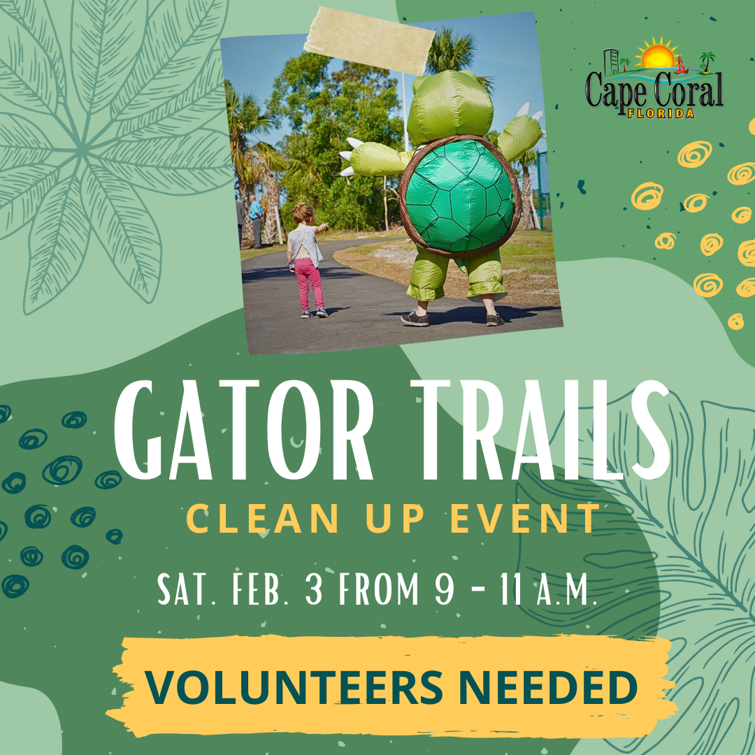 The City of Cape Coral is partnering with Keep Lee County Beautiful for a cleanup event at Gator Trails Park, 3612 Garden Boulevard, Saturday, February 3, from 9-11 a.m. and is seeking volunteers.