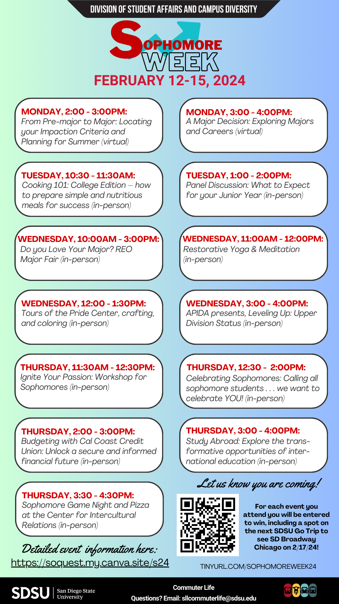 For any conference questions, follow @SDSULeadAndServe on Instagram or email them at leadership.programs@sdsu.edu.
