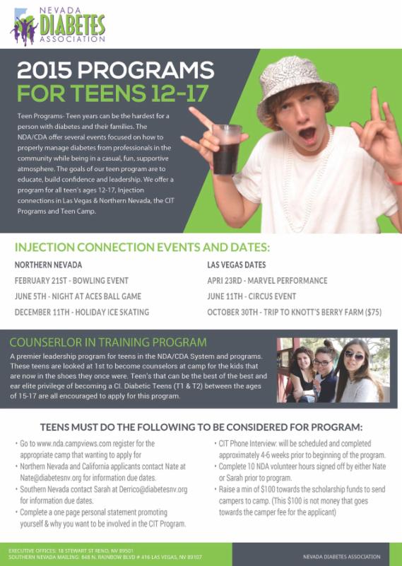 The Mission of the Nevada Diabetes Association and California Diabetes Association is to improve the lives of children and adults affected by diabetes through prevention, education and service. The goal of the NDA and CDA is to provide programming that will help avoid complications that this disease causes for children and adults. We offer diabetes education camping programs, diabetes support programs, diabetes seminars/ workshops, printed and electronic diabetes educational resources, emergency insulin and diabetes supply programming.