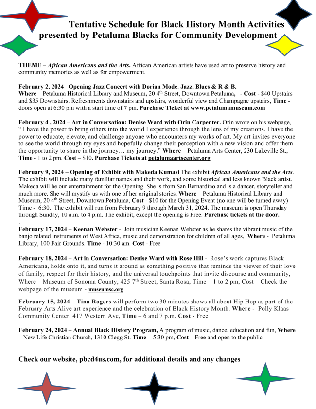 Black History Month Activities presented by Petaluma Blacks for Community Development | |