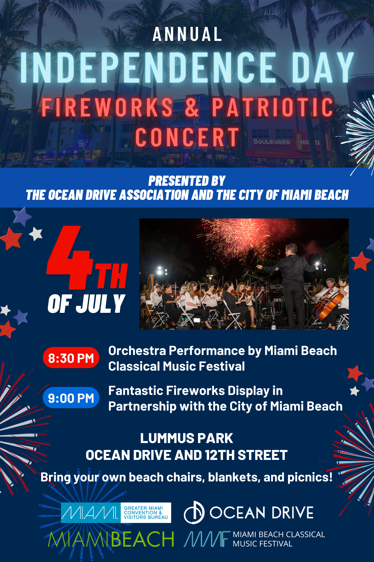 Drones and fireworks will fill the skies over Miami Beach on July 4 as part of the city’s annual Fire on the Fourth celebration powered by Cox Media Group in honor of the nation’s 247th birthday.