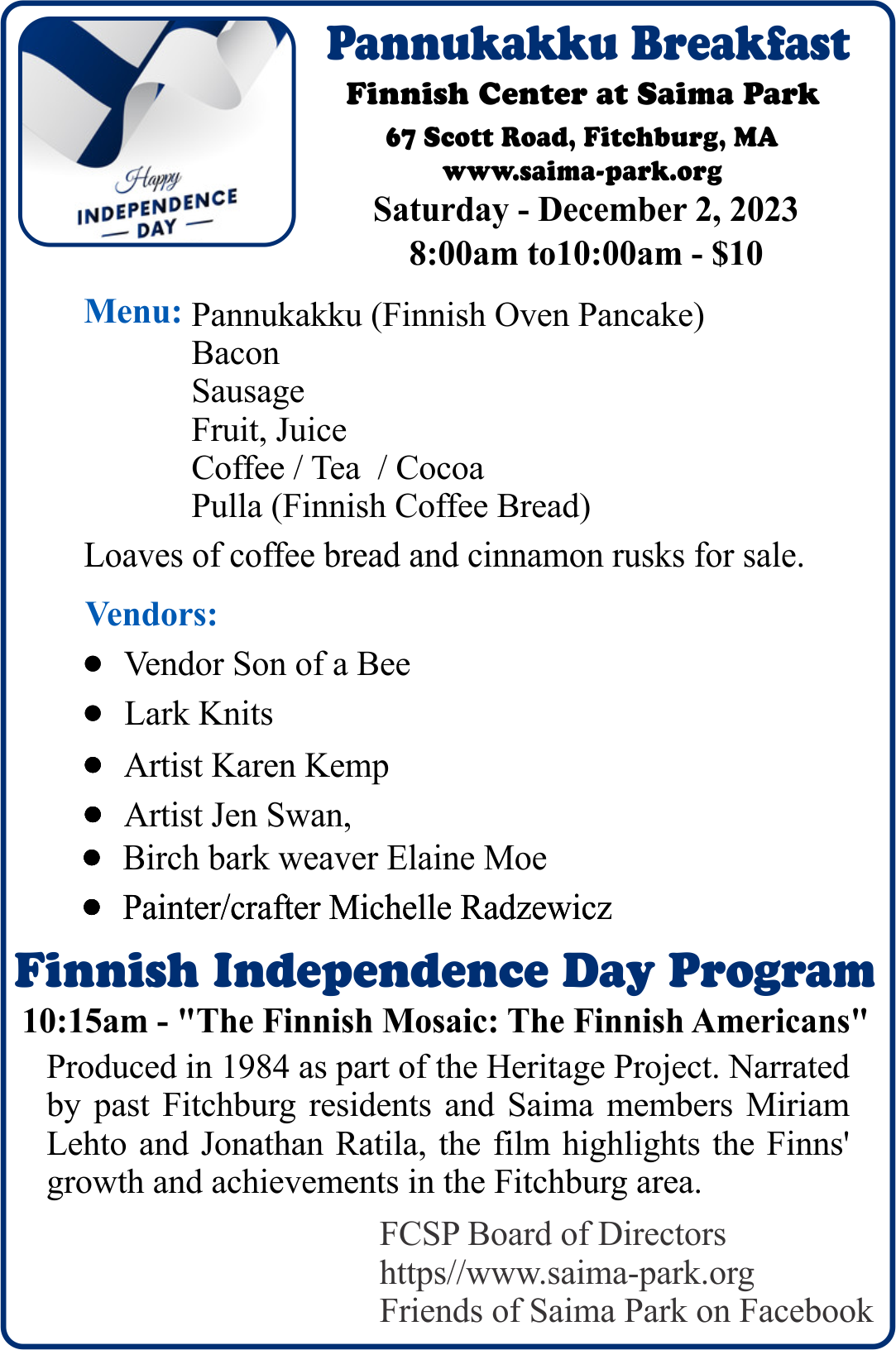 Thank you to Mayor Stephen DiNatale and the office of Senator John J. Cronin for citations to our special guests. Thank you to the FCA board and members, our event committee, The Finicky Fork Catering Company, Ukulele J, Eddy's Music, The Thurston Consort, and the staff at the Fitchburg Senior Center for making a delicious, beautiful evening.