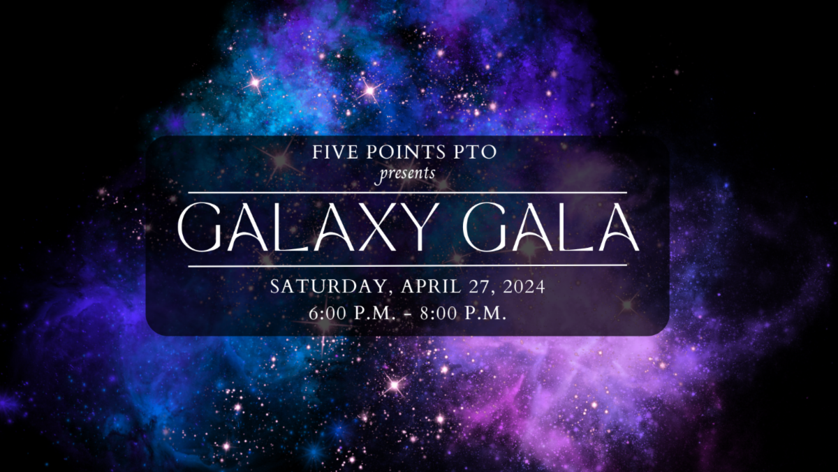 Five Points PTO is super excited to announce the return of our themed dance for Five Points students! Galaxy Gala will be held on Saturday, April 27th at Five Points Elementary 6:00 - 8:00 p.m.