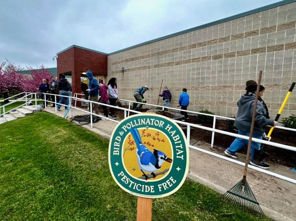 Natureworks manager Diane St. John is an amazing woman. Not only does she manage the Natureworks retail shop, she also somehow finds the time to volunteer in her community of Durham, CT. This is a pollinator garden that Diane helped teacher Susan Michael to design at the Brewster School. Susan received a grant from The Rockfall Foundation to replace the long, invasive row of Japanese barberries in this garden and applied to get a #growinggood grant from our friends at Coast of Maine who donated 10 bags of Organic Penobscot Planting Mix. Together, Sue, Diane, Middlefield/Durham Cub Scout Pack 33, Middlefield/Durham Scouts Troop 33 and all the parents worked together to install 13 native shrubs to provide habitat and food to pollinators and birds. And Natureworks donated the Bird & Pollinator Habitat Sign. We have heard teachers have already brought their classes outside to see the garden and discuss why these plants were chosen and how they will help the ecosystem. Way to go! | |