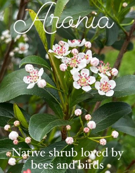 May means that all of our Aronias are in bloom. We have both black and red berried forms. They birds love the berries but right now, the flowers are just so pretty. Dr. Mark Brand at the University of CT has done so much work breeding our native Aronias to be useful landscape plants. There are now ground cover forms, low mounding forms, even narrow upright forms. Stop in and check out what we have in our native shrub section and let us help you choose the right ones for your yard. | |