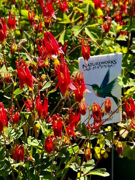 Last Saturday, I squealed out loud when I discovered that we had little pots of the straight species wild columbine (Aquilegia canadensis) on our benches! This is the perfect plant to feed the hummingbirds which are now here in CT. And, it is a great plant for naturalizing in sun or shade. All you have to do is not deadhead it until the seed pods are ripe. Then, sprinkle the seeds wherever you want it to grow and next year, don't weed that area until you know how to recogonize columbine babies!