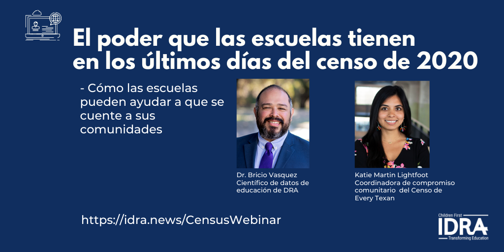 Este seminario web tiene como objetivo movilizar a la comunidad educativa para completar el censo. Debido a COVID-19, la Oficina del Censo de Estados Unidos extendió sus operaciones hasta el 31 de octubre de 2020. Pero la Oficina del Censo anunció repentinamente que estaba retrasando las operaciones al 30 de septiembre, recortando un mes de tiempo muy necesario para lograr un censo completo y preciso.