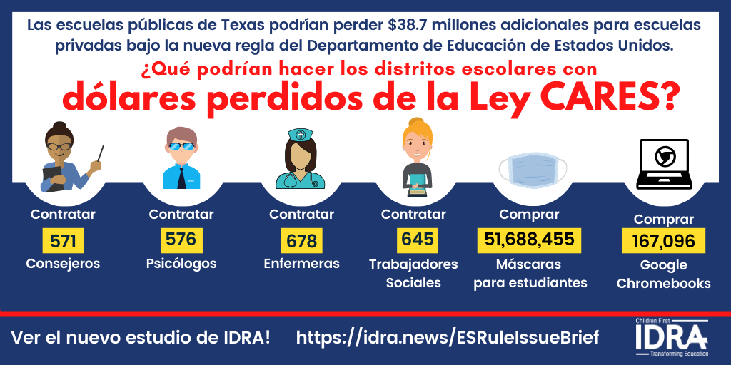 En el escrito de amicus presentado por la coalición de defensores de la equidad educativa centralizados en Texas, los grupos argumentan que la nueva regla del Departamento reemplaza ilegalmente los métodos de distribución equitativa de servicios que el Congreso adoptó intencionalmente en la Ley CARES.