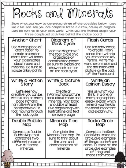 Los tableros de elección son herramientas de instrucción que los educadores pueden usar en cualquier área de contenido o nivel de grado. Los ejemplos varían, pero dos tipos populares son los tableros de menú y Tic-Tac-Toe. Estos organizadores gráficos constan de diferentes tareas, actividades o proyectos que los estudiantes pueden elegir completar para demostrar su comprensión del objetivo de aprendizaje. Los profesores suelen incluir instrucciones breves y plazos. Si un tablero se basa en proyectos, los maestros a menudo incluirán una rúbrica para comunicar las expectativas de uno o más proyectos en el tablero.