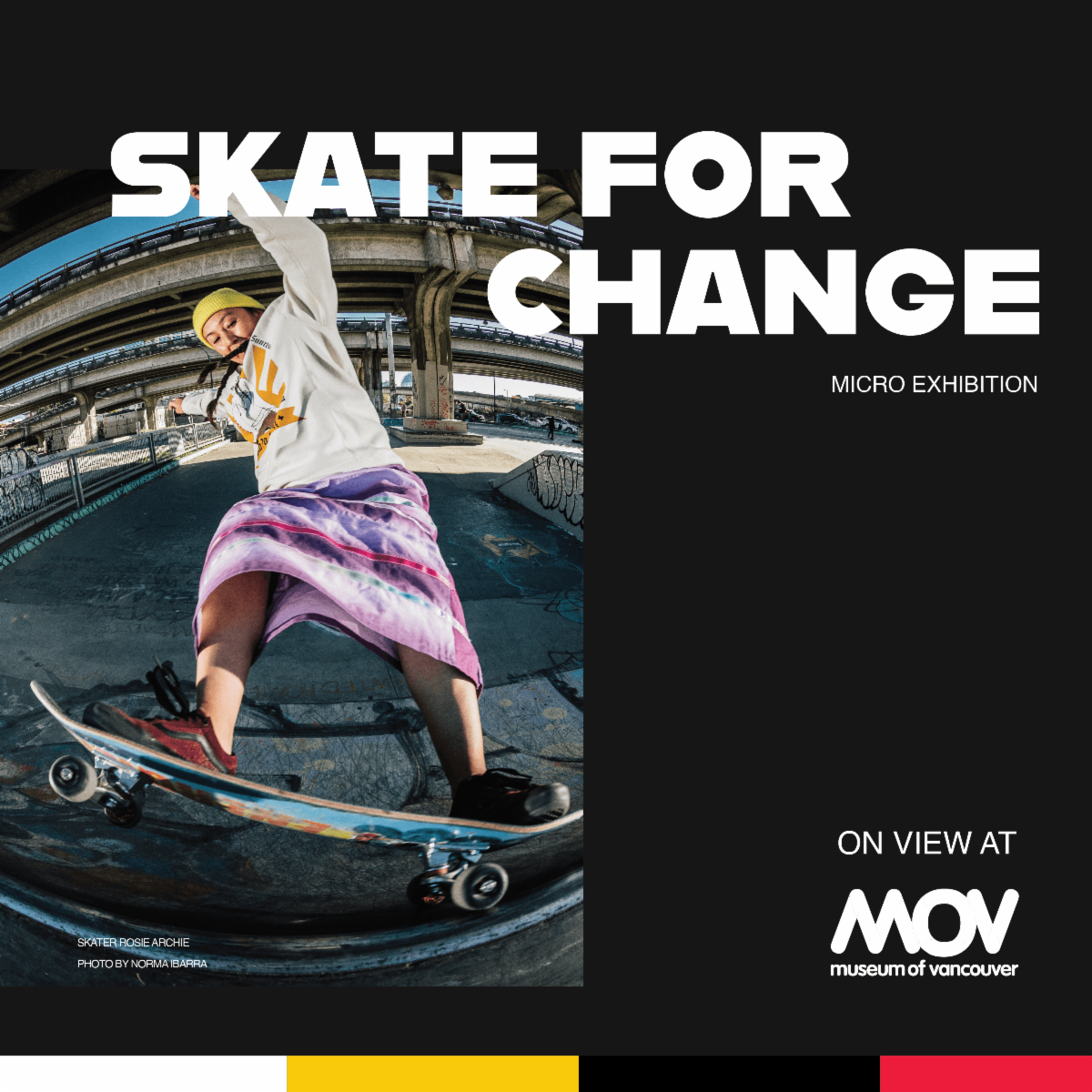 This montage, which is featured in the Skate for Change micro-exhibition, was created by Norma Ibarra. It highlights skaters Taylor Lee, Rosie Archie, Nora Stakaya Pape, Jaime-Lynn Cook, and Jade Tahnibaa (Spotted Eagle).