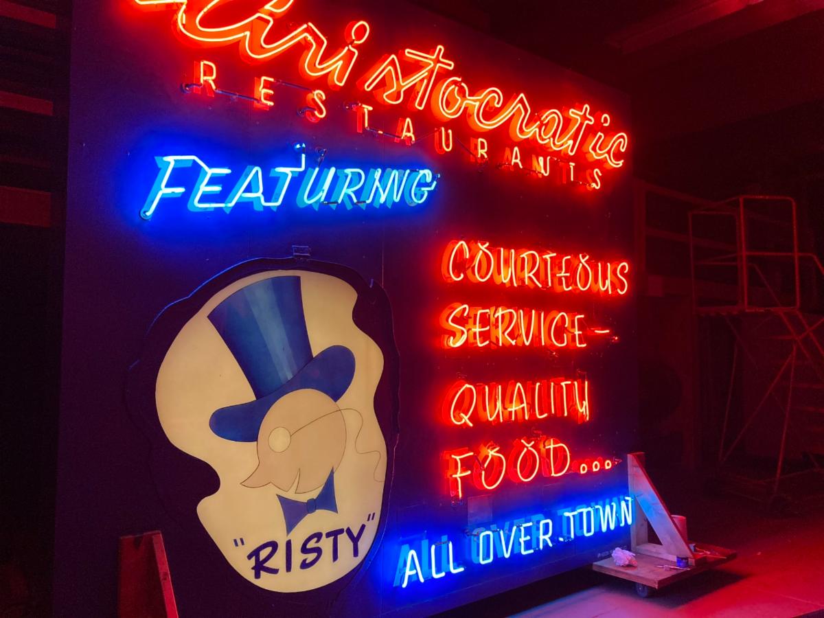 Let there be light! The iconic Aristocratic neon Sign (c. 1940) has been relit for the first time in decades.