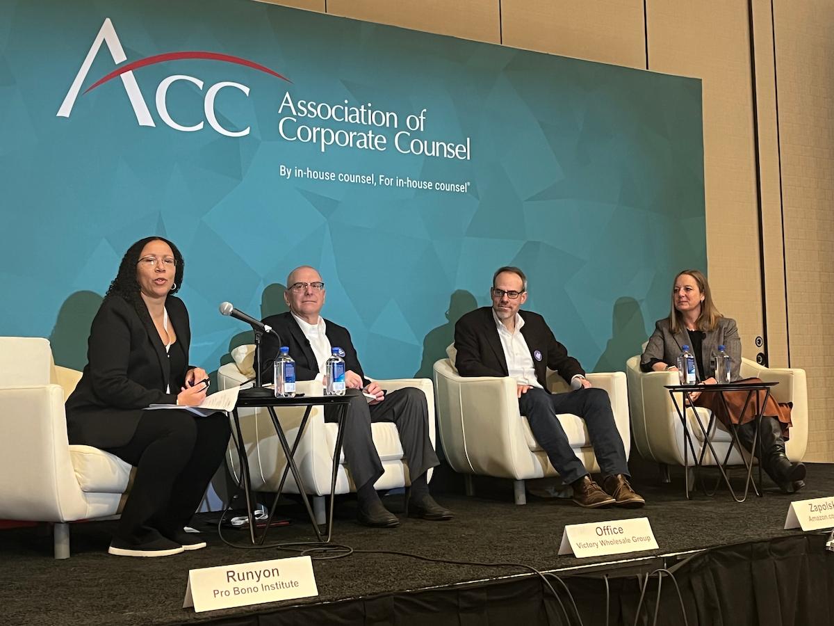 Dozens of attendees listened to an engaging conversation about the growth of in-house pro bono, the role of CLOs in empowering their legal departments to engage in this work, how pro bono ties in with corporate DEI and social impact priorities, and the importance of corporate leadership in access to justice initiatives.