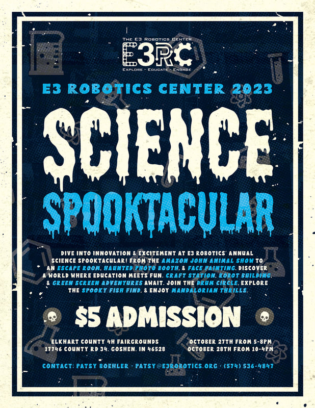 Science Spooktacular is hosted here at the Fairground in the ECCC on Friday October 27 from 5-8pm and Saturday October 28 from 10am-4pm. Science Spooktacular is organized by E3 Robotics Center, a community partner that helps Robotic Elks, our official 4-H robotics team.
