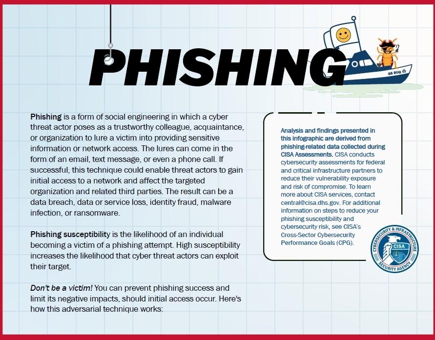 The Cybersecurity and Infrastructure Security Agency (CISA) has produced this infographic to summarize the anatomy of a phishing attack.