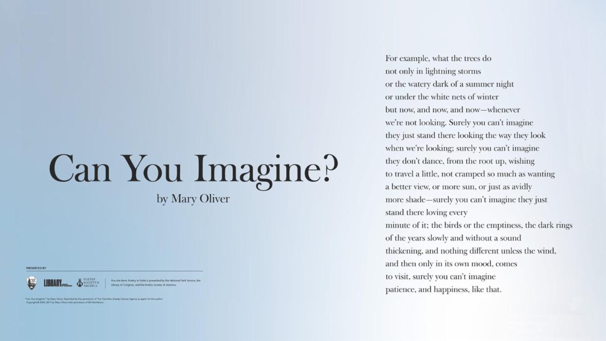 For more information, click here. https://www.nps.gov/subjects/literature/poetryinparks.htm