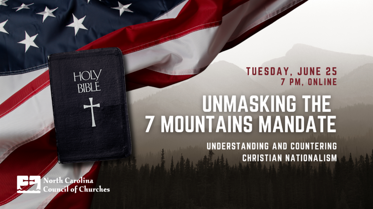 Join us for a thought-provoking webinar featuring Jennifer Copeland, Executive Director of the North Carolina Council of Churches, and Kendal McBroom, Director of Civil and Human Rights at the General Board of Church and Society, The United Methodist Church. This event will help people make connections between the Seven Mandates and policies that are being enacted or proposed for our state and communities. Click here to register.