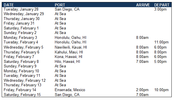 Featured cruises are per person based on double occupancy and are subject to availability. Package rates are for inside cabins include round trip air from select air gateways unless specified. Please inquire for details. Transfers government taxes and fees are additional. Offers may be removed without notice and our lowest prices guarantee is based on cruise line terms and conditions. | |