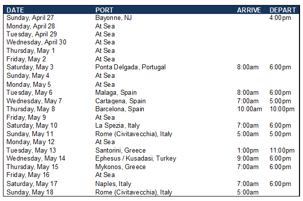 Interested in our best rates for the sailings mentioned below or any of Oceania's departures? Feel free to send me an email.
