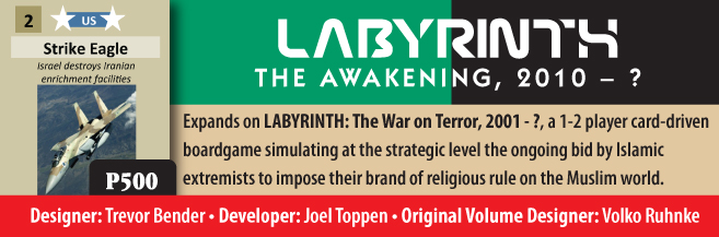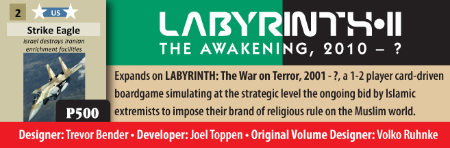 The demo at the GMT Weekend at the Warehouse went really well, and the players who participated all said they felt drawn into the evolving story the game created. That was (is) Job #1 for me, so that was gratifying feedback. I have to say, that one aspect of the game was skewed a bit in that NONE of us could roll good intel results to save our lives! So the Middle East, especially, got to be a bit of a "free trade zone" for terror. I learned a few things from the test, and have a dozen or so items to look at and tighten up as a result. Thanks to those guys who played and gave me feedback at the Weekend - it really helps!