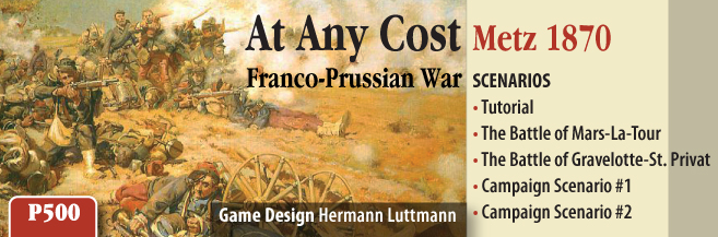 The game has entered a second round of playtesting via Vassal and Sun Tzu modules with a great group of testers. The delay to this point has been my re-design of the game system to a more streamlined approach, closer to what I originally envisioned for the game from the start. So far, the feedback has been 100% positive on the new "look" and that has been very encouraging. This has revitalized my effort to get this game done by mid-summer and we will work hard to meet that goal. At Any Cost is a unique look at the Franco-Prussian War battlefield and we hope that you'll be as intrigued by the situation as we have while designing and playing the game.