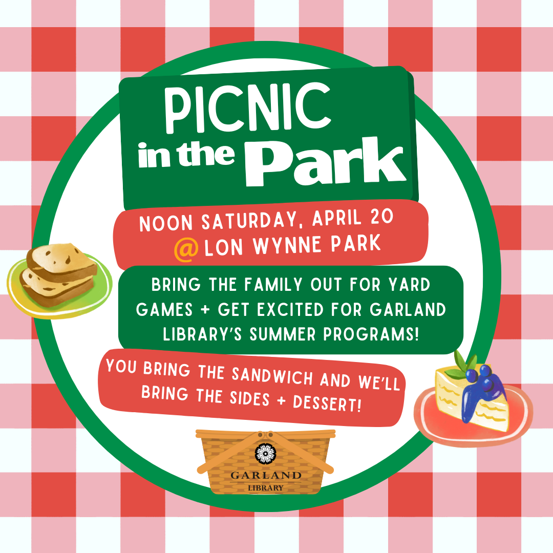 Socialize, snack and play at the library's Spring Family Picnic from noon to 1 p.m. Saturday, April 20, at Wynne Park, 3858 S. Glenbrook Drive.