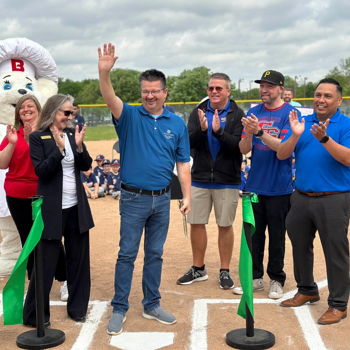 Garland Mayor Scott LeMay and City Council members honored the first day of the South Garland Little League season with a ribbon-cutting ceremony to celebrate the team’s new tee-ball field at Central Park.