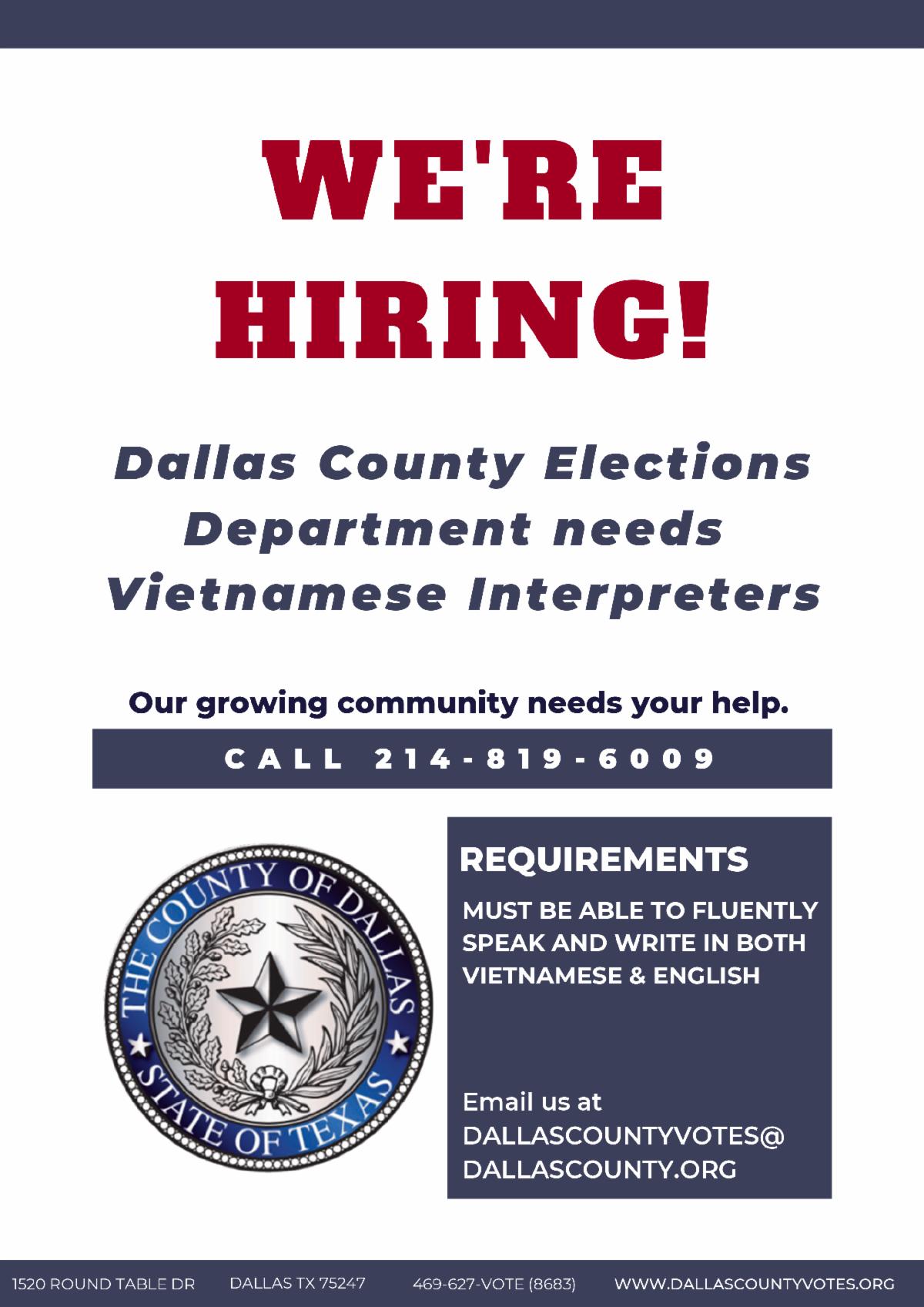 If you have questions regarding early voting, contact Dallas County Elections Department at 214-819-6359. If you have other election issues, contact the City Secretary at 972-205-2404 or Dallas County at 214-819-6300 or DallasCountyVotes.org.