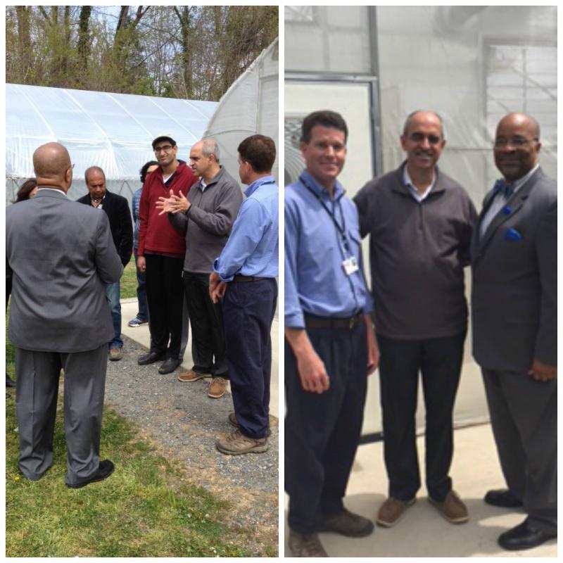 Dr. Srikant M. Datar (photo on left) takes a tour of the farm. In photo on right, Dr. Datar with Albert B. Kelly, Gateway's President and CEO, and Marcus Weaver, Gateway's Director of Food and Agricultural Programs.