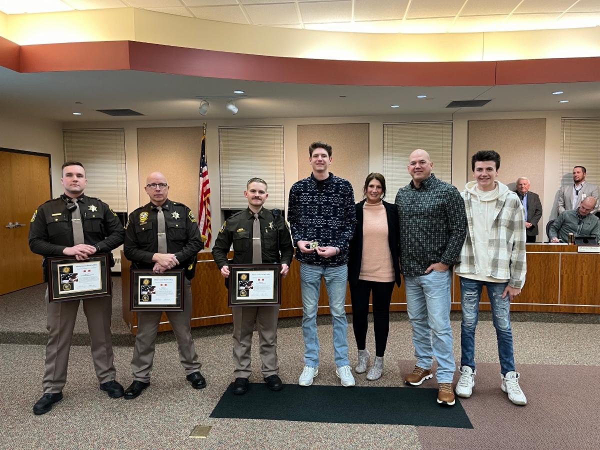At the January 22nd Board meeting, Ottawa County Sheriff Steve Kempker presented Deputies Tottingham, Heaton, and Malkewitz with a Life Saving Award for their roles and life-saving efforts when they responded, along with the Georgetown Township Fire Department, to the medical emergency of a 17-year-old Georgetown Township resident last September. Thank you to our local deputies for your service and dedication to our community! |