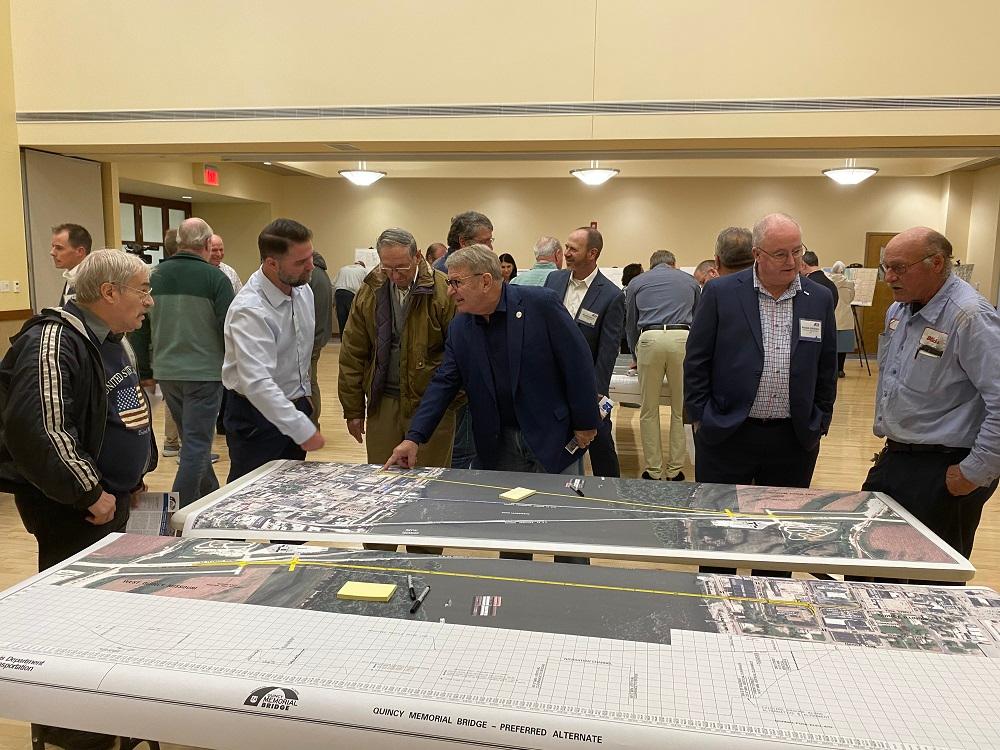 Region 4, District 6: More than 100 people attended a public meeting Dec. 7 in Quincy to learn about the replacement of the Quincy Memorial Bridge. The preferred design for the new bridge as well as exhibits, maps and aerial photography of the study area were available for the public to gain a better understanding of the proposed improvement.