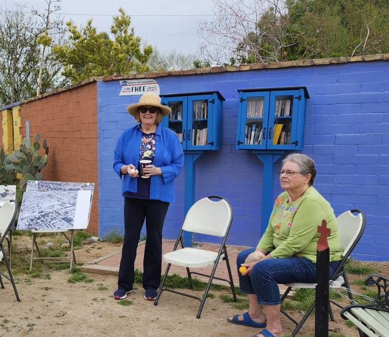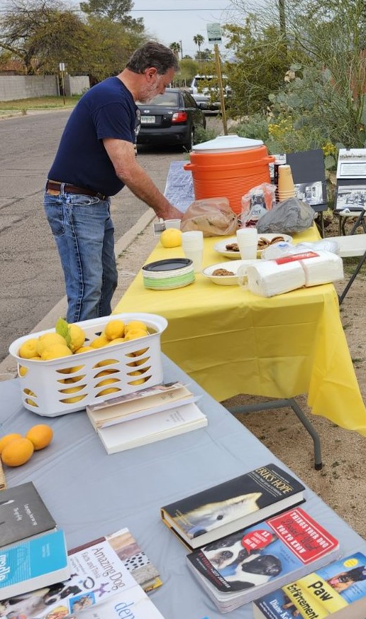 The Little Free Library gathering had lots of books, citrus, and good discussions.