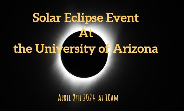 The next solar eclipse in Tucson is a partial eclipse on Monday, April 8, 2024! Locally, we will see about 75% of the Sun's diameter covered by the Moon. Gather your friends and hang out on the UA Mall outside Flandrau. Look out for solar telescopes nearby and feel free to take a break inside Flandrau (from 10AM to 2PM) and enjoy reduced science exhibit admission of only $5. Following the eclipse, there will be planetarium shows for only $5 per ticket.Thank you, Tucson Amateur Astronomy Association for providing solar telescopes!