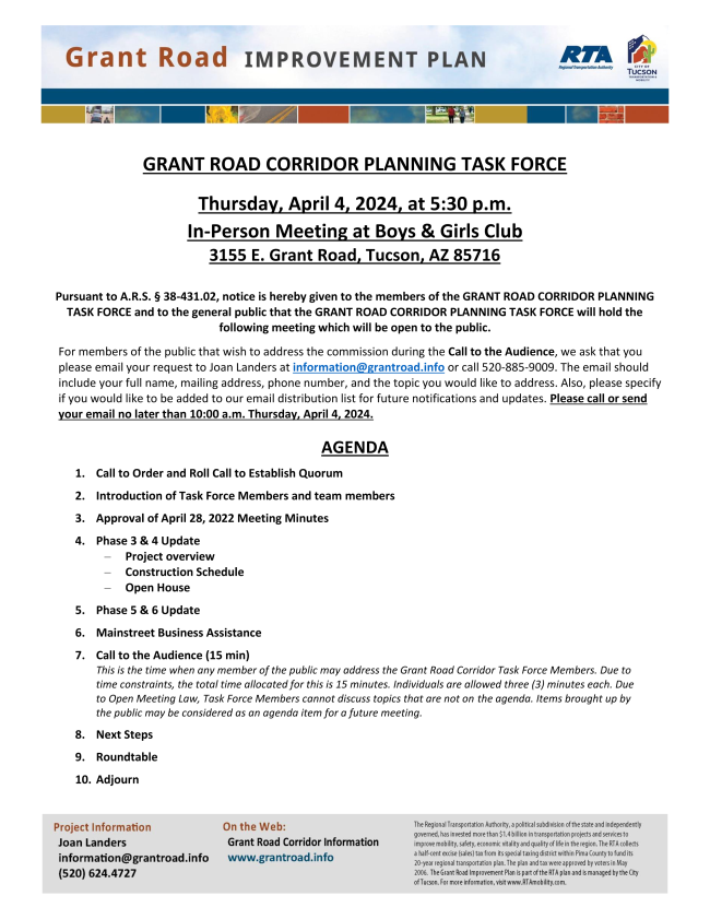 Jefferson Park, please note! Grant Road Phase 5/6 involves the JP area from Mountain Ave. to Santa Rita on the south side and all the way to Campbell on the north side. See item #5. Will we still get the promised green space? This is an important meeting; we need to stay informed. | |