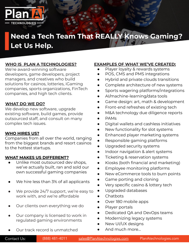 | Plan A Technologies is an award-winning software development and digital transformation company, with staff in 25 countries around the world. Plan A's team of backend and frontend software engineers, artists, inventors, project managers, former CTOs, and futurists work with organizations around the globe. | | | | |