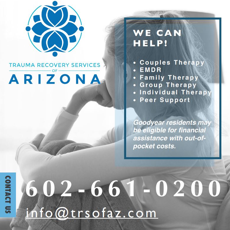 The City has entered into a contract with Trauma Recovery Services of Arizona (TRSAZ) to cover the out-of-pocket expenses for an estimated 300 unduplicated, qualifying Goodyear residents, age 13 and up, to receive evidence-based and trauma-informed mental health services.
