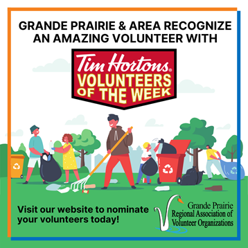Nominate you volunteer today at https://www.volunteergrandeprairie.com/tim-hortons-volunteers-of-the-week-nomination-form-2/.