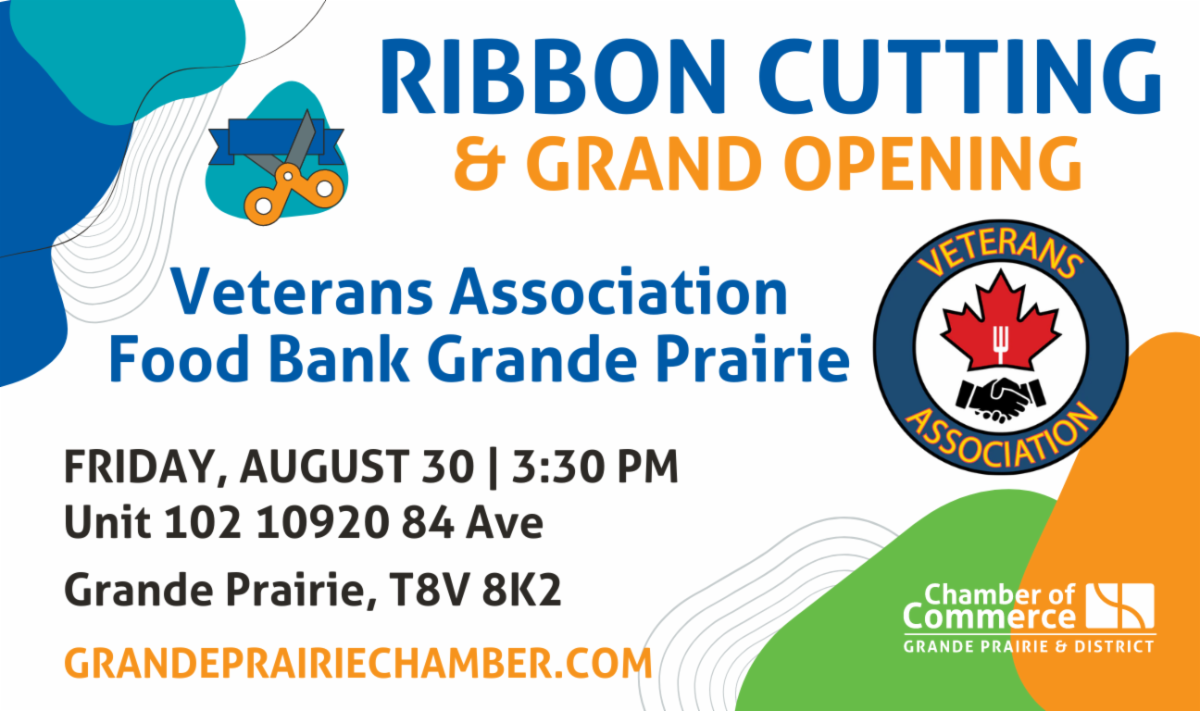 The Grande Prairie & District Chamber of Commerce invites you to a Grand Opening Ribbon Cutting hosted by the Veterans Association Food Bank Grande Prairie on Friday August 30th.