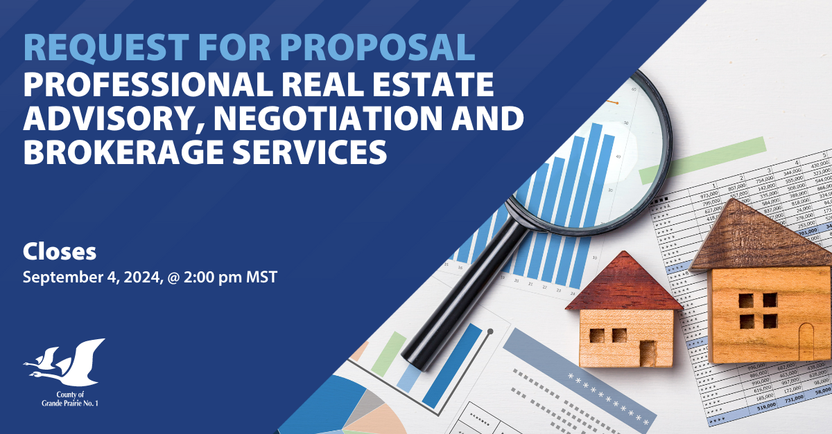The County of Grande Prairie seeks proposals for Professional Real Estate Advisory, Negotiation, and Brokerage Services. Visit our Bids and Tenders page for more information and to submit your proposal. Bids and Tenders - County GP | |