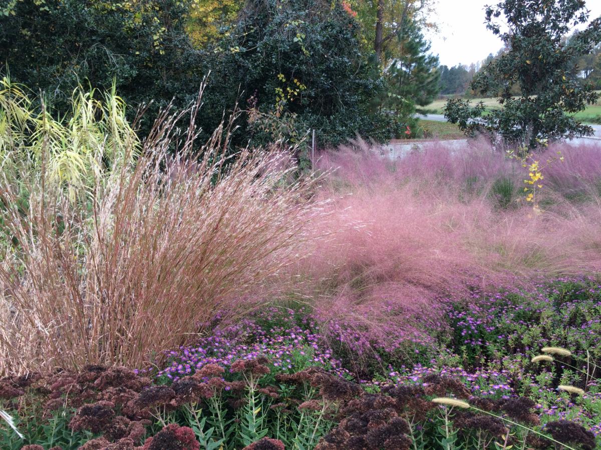 Muhlenbergia capillaris and Pennisetum alopecuroides 'Foxtrot'