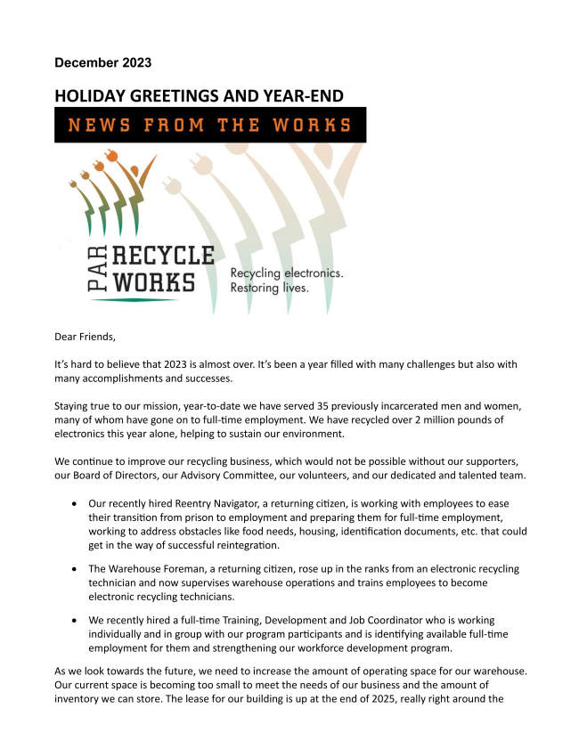 🎄Reflecting on Progress & Looking to the Future at PAR-Recycle Works🌟