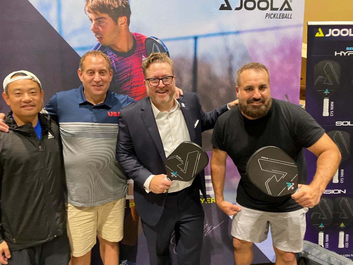 GO Sports President & CEO Jason Siegel and Board Member Mike Harris joined Gordon Kaye from Joola for a pickleball lesson at the Gaylord Palms, and met Ben Johns, the #1 ranked player in the world | |