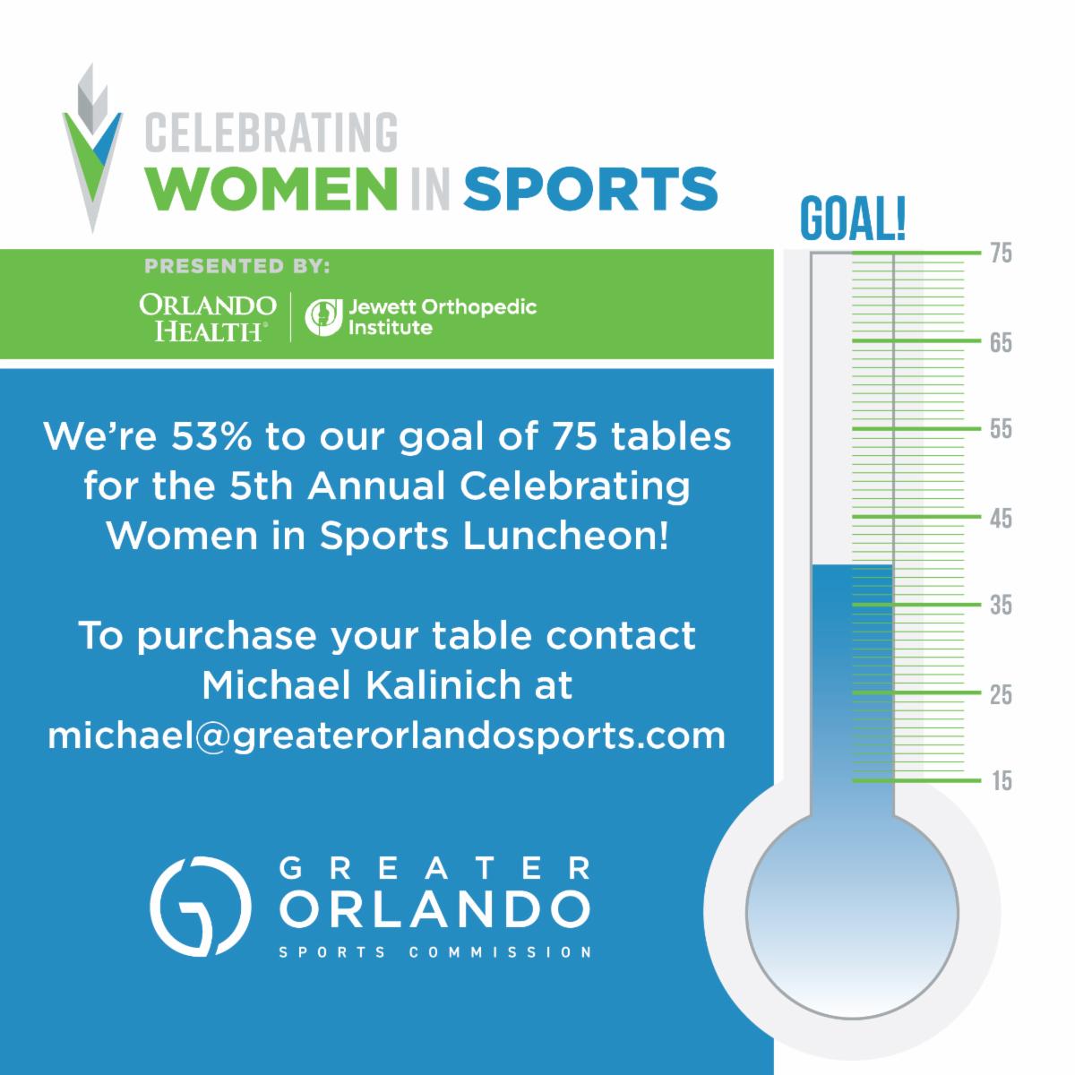 Greater Orlando Sports Commission will host our 5th annual Celebrating Women in Sports luncheon presented by Orlando Health Jewett Orthopedic Institute on Wednesday, September 13 at UCF's Addition Financial Arena. This year's featured speaker is Joan Benoit Samuelson, winner of the first ever women's Olympic marathon at the 1984 games in Los Angeles, and pioneer of women's marathoning. To purchase a table and inquire about sponsorship opportunities, contact Michael Kalinich. Click here to purchase individual tickets.