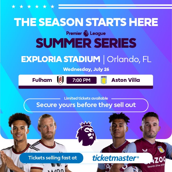 Join us on Wednesday, July 26 at Exploria Stadium for the Premier League Summer Series starring Fulham vs. Ashton Villa. Limited tickets are available here!