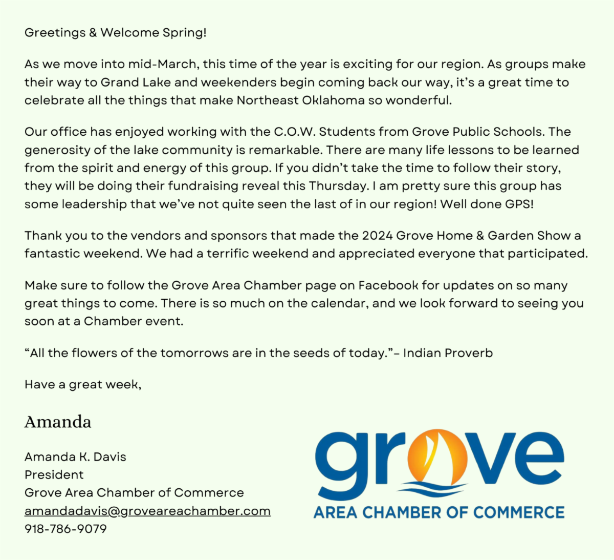 121 W. 3rd St., Grove 918-786-8950 or groveplaymakers@yahoo.com