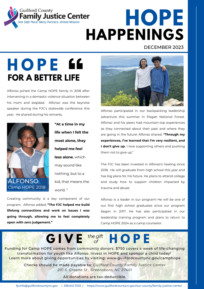 Check out our latest Hope Happenings filled with highlights and successes in recent months.