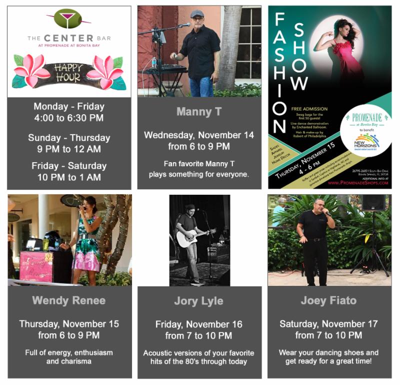 Herald in the holidays with friends and family at Promenade! Be surrounded by music, lights, dancing and delicious treats that will put you in the holiday spirit. Bring a new unwrapped toy for Operation Santa, a partnership with the Children's Network of Southwest Florida, for FREE pictures with jolly ole Saint Nick!