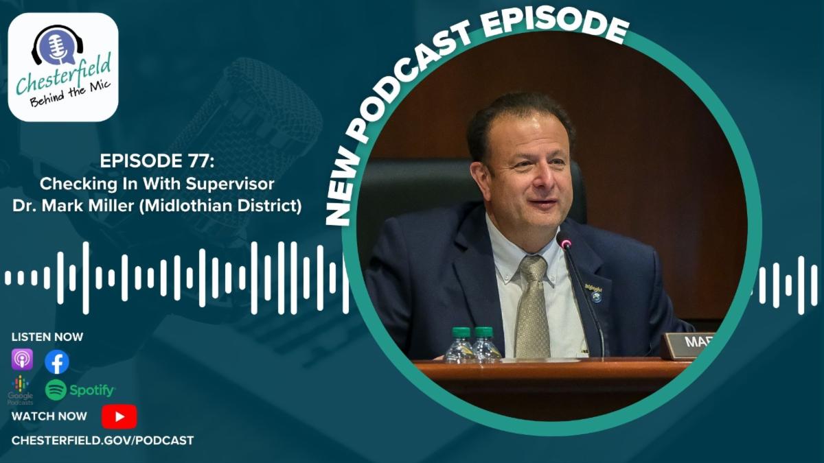| On the latest episode of Chesterfield Behind the Mic, which drops tomorrow, we talk to Midlothian District Supervisor Dr. Mark Miller about his first tenure as vice chair of the Board of Supervisors, some of the big items facing the county in 2024 and a number of updates on projects in the Midlothian District. | |
