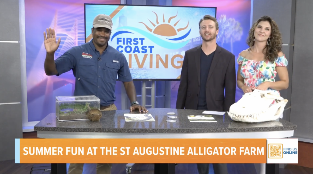 GFP graduate Trevor Mia '22 (left) of St. Augustine, Florida, has appeared several times on WTLV-Jacksonville Local's First Coast Living show. In a recent segment, Mia shows off a few animal ambassador friends from the St. Augustine Alligator Farm, including Webster the tarantula, Jerry the eastern indigo snake, and Al the American alligator. Mia has worked as the Farm's curator of education for more than six years. Watch the segment
