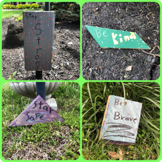 "The blocks are the work of Ruby Gilles & Grace Cotton. The girls call themselves the "AOK Club" (for Acts of Kindness.) In addition to their painted blocks to cheer up neighborhood walks, they collaborated with Ruby's family this summer to hold a bake sale with donations going to the Dragonfly Foundation."